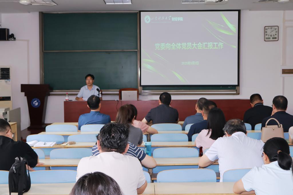 9月2日,财经学院党委召开党员大会,学院党委书记陈炳志代表学院党委向大会报告2025年上半年党建工作,全体党员参加会议。