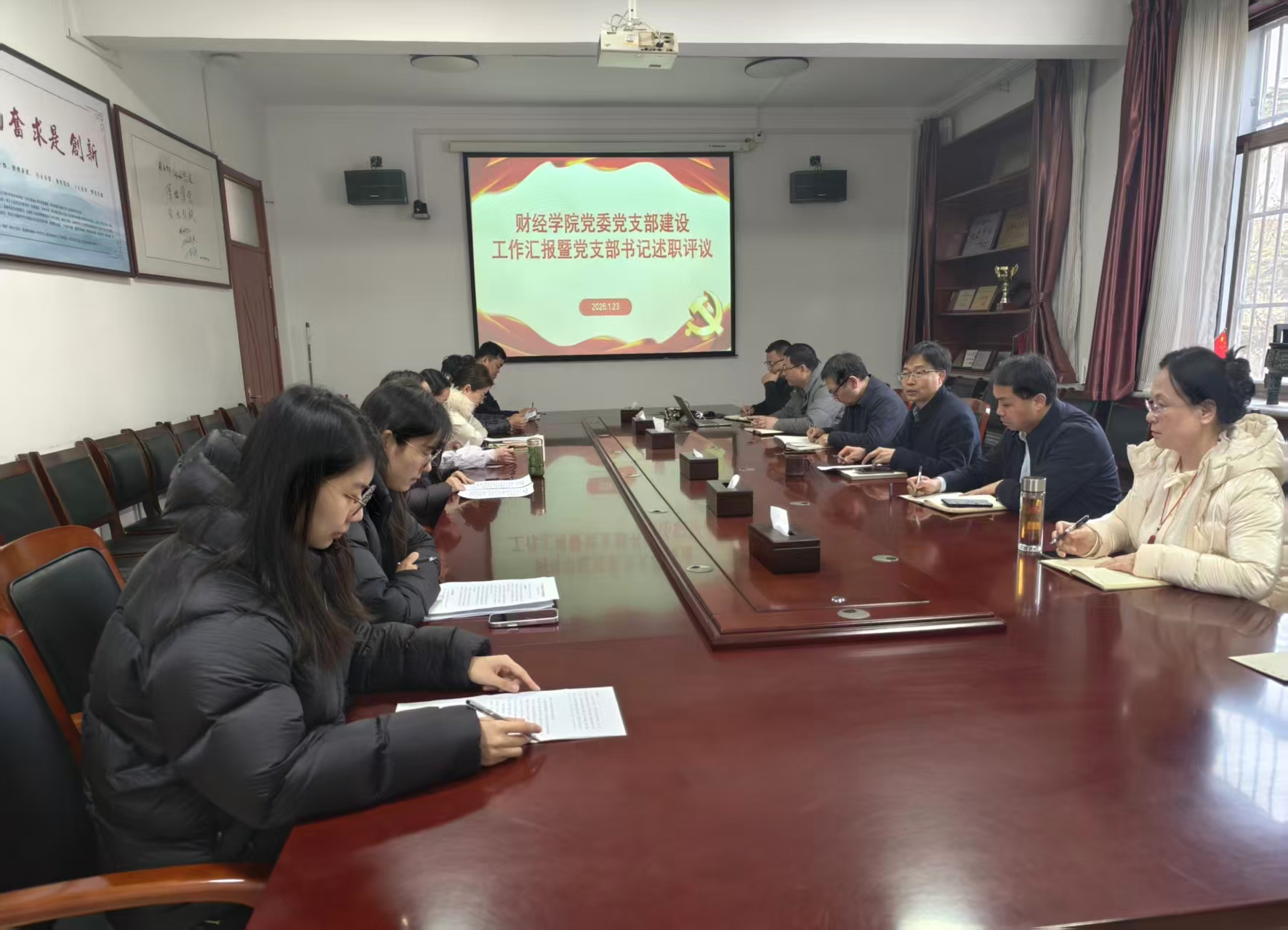 为进一步强化政治建设,压实主体责任,推动各党支部党建工作重点任务落实,1月23日,财经学院党委召开2025年度党支部建设汇报暨党支部书记述职评议会。会议由学院党委书记陈炳志主持,学院领导班子成员、全体党支部书记,部分党员、群众代表参加会议。